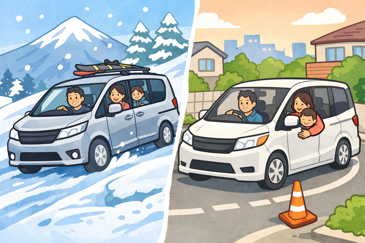 セレナとステップワゴンは、どちらも家族向けミドルミニバンの有力候補です。ただし、選び方は「どちらが上か」ではなく、「3列目をどれだけ使うか」「普段の送迎が中心か、旅行が多いか」「4WDまで必要か」でかなり変わります。結論を先に言うと、室内アレンジの幅や先進装備の選択肢を重視するならセレナ、2列目・3列目の快適性や荷室のわかりやすさを重視するならステップワゴンが合いやすいです。