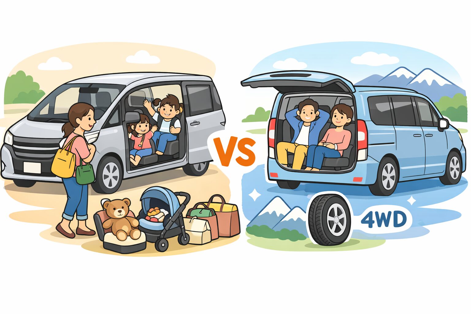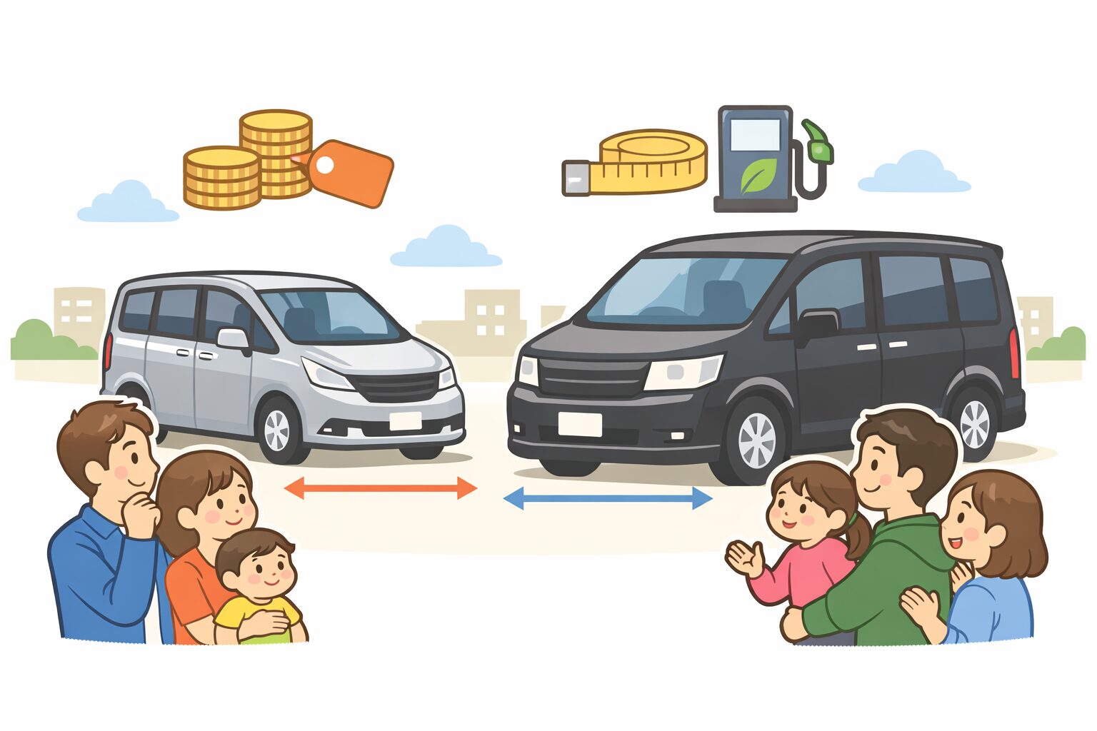 燃費だけでは大きな差は出にくく、購入価格と欲しい駆動方式の差のほうが影響しやすいです。予算を抑えて入りやすいのはセレナ、後席快適装備まで含めた満足感を重視するならステップワゴン、という見方が実用的です。