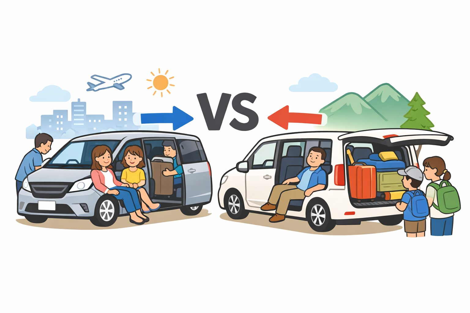 | 3列目の特徴 | 8人乗り時の実用性、車内移動のしやすさが魅力 | 厚みあるクッション、見晴らし、静粛性が魅力 |