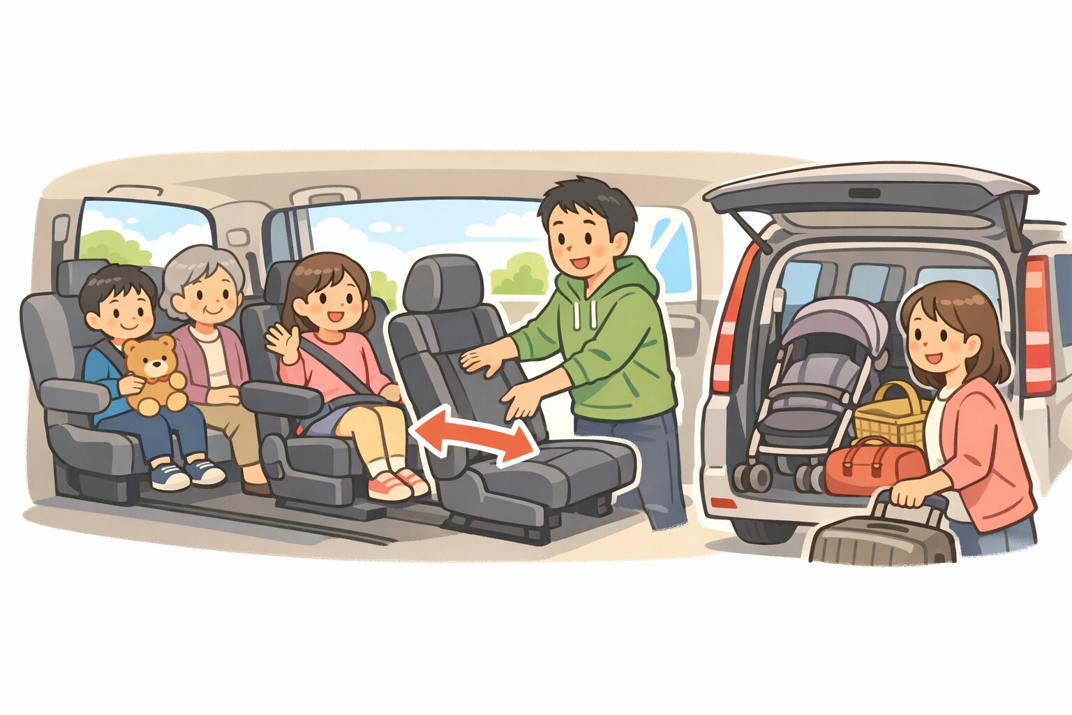 | 後席・荷室の使い勝手 | 基本構造は共通 | 基本構造は共通 | 7人/8人の選び方が差を作る |