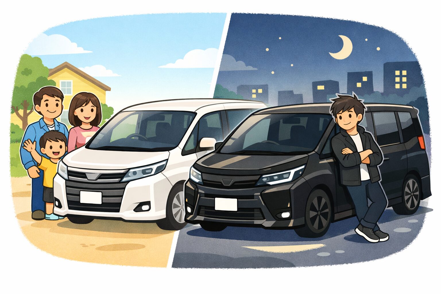 ヴォクシーは、見た目の満足感を優先しても後悔しにくい価格差に収まっています。S-GやS-Z前提なら、単なる見栄ではなく、長く乗るうえでの“好きなほうを選ぶ価値”が出やすいです。