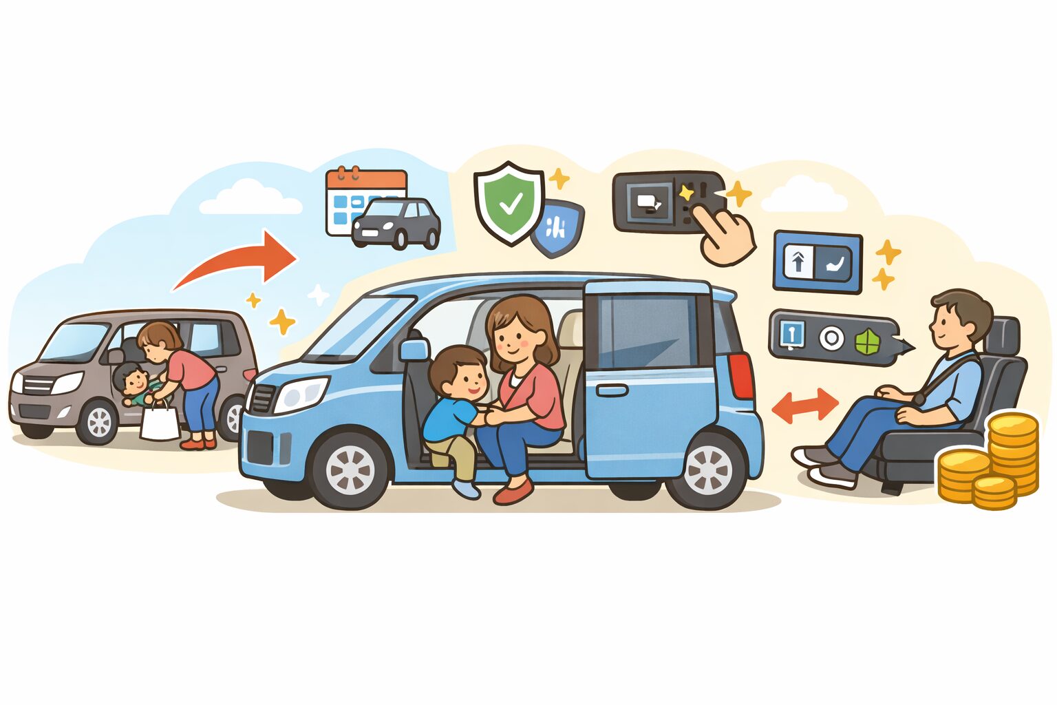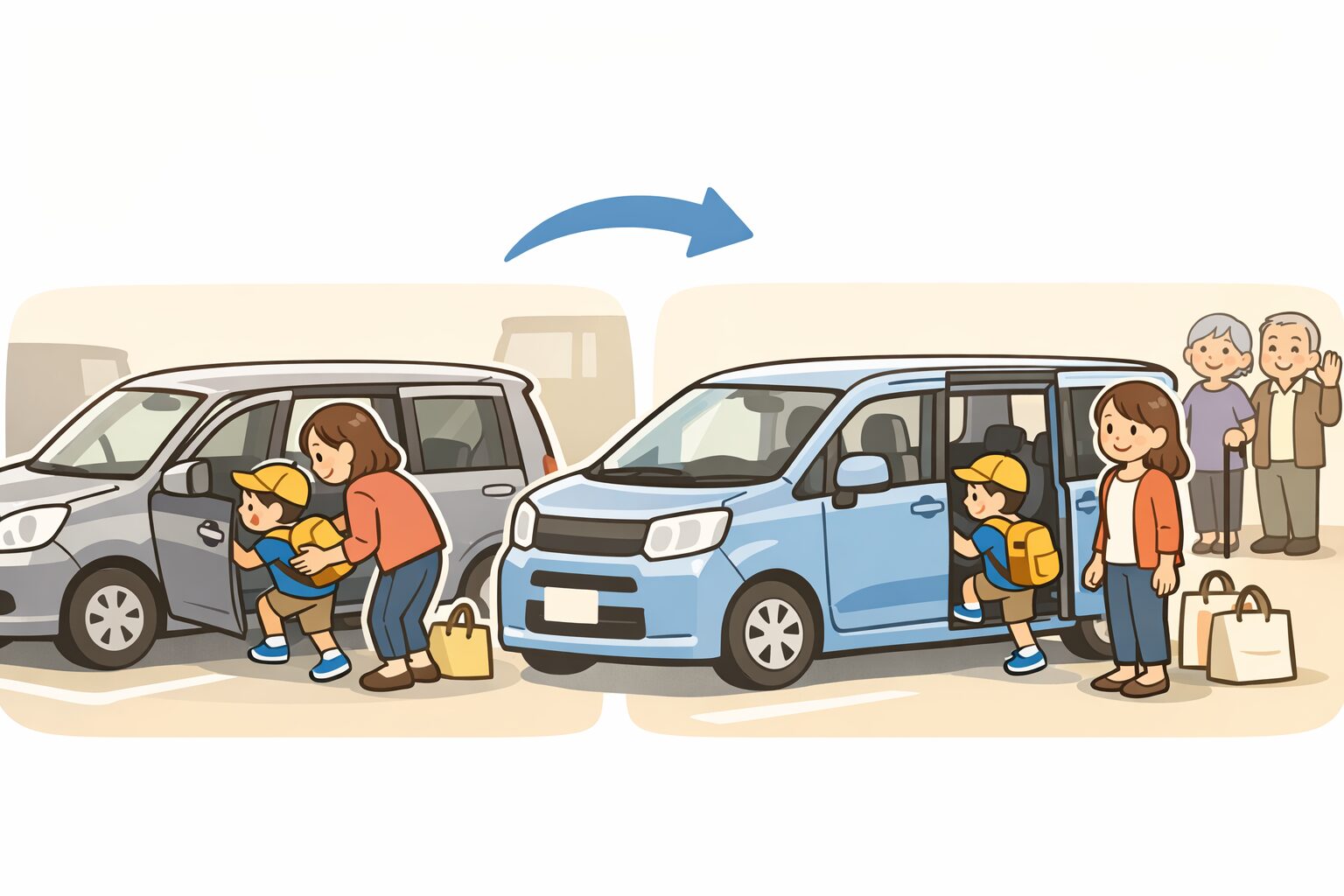 一番変わるのは後席アクセスです。室内高が劇的に伸びたというより、ヒンジドアからスライドドアになったことで、日常の乗せ降ろしがラクになった点を強く感じやすいです。