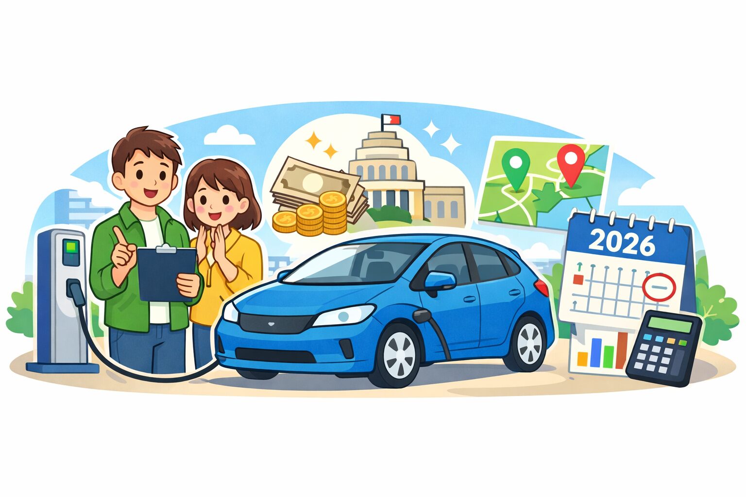 2026年のEV補助金は、「国のCEV補助金」を軸にしつつ、住んでいる地域によって自治体の上乗せが大きく変わるのがポイントです。しかも2026年は、1~3月登録分と4月以降登録分で見る一覧が違ううえ、同じ車名でもグレードで補助額が変わるケースがあります。この記事では、公式情報ベースで、補助額の見方、対象条件、申請時期、実質価格の計算方法までまとめます。