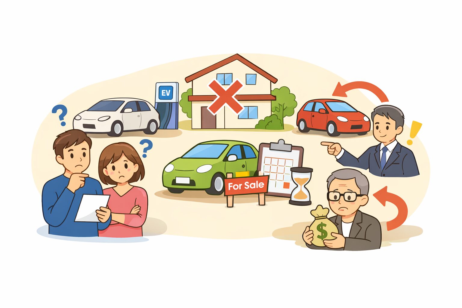 下取車の入庫前申請は原則できません。納車スケジュールと合わせて動く必要があります。 - 受給後すぐ売ると返納の可能性